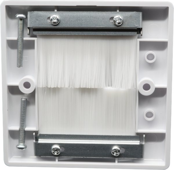The Single Gang White Brushes Face Plate is a sleek solution for cable management in any setting. With its white brushes and frame, it offers a clean, organized look to your space